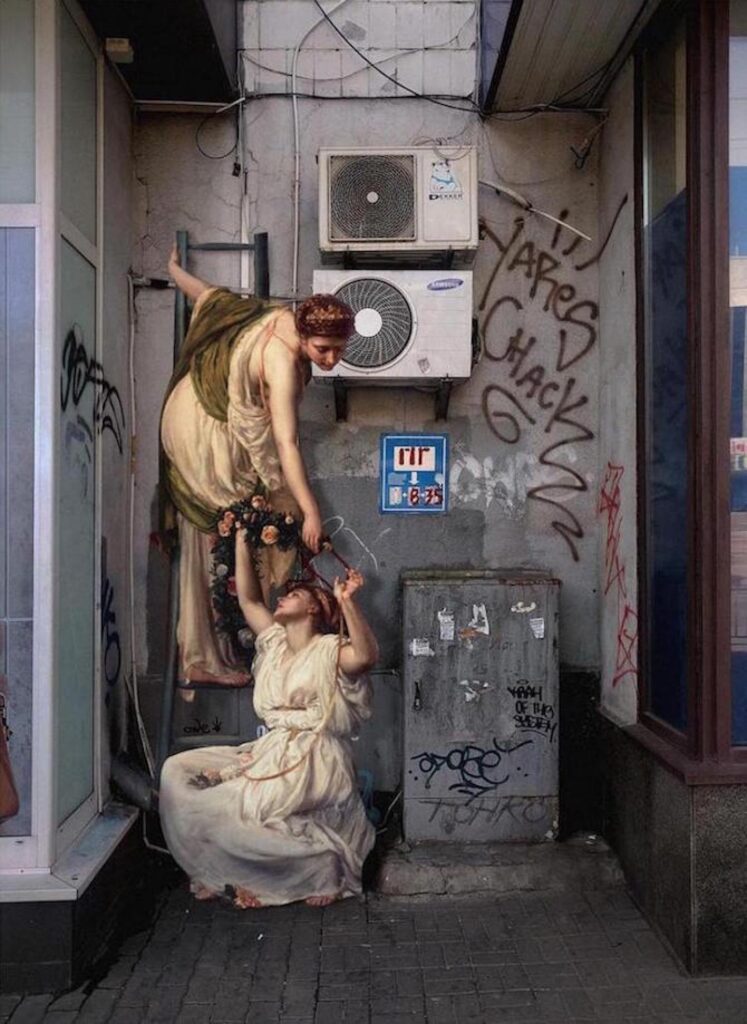 The image above is by Ukrainian photoshop artist Alexey Kondakov. He extracts figures from Renaissance paintings and resituates them in contemporary urban settings, where they appear to take on new meanings and/or reassert their original spirit. I really like it as another illustration of how context can both illuminate and transform the meaning and even the existence of things and people.